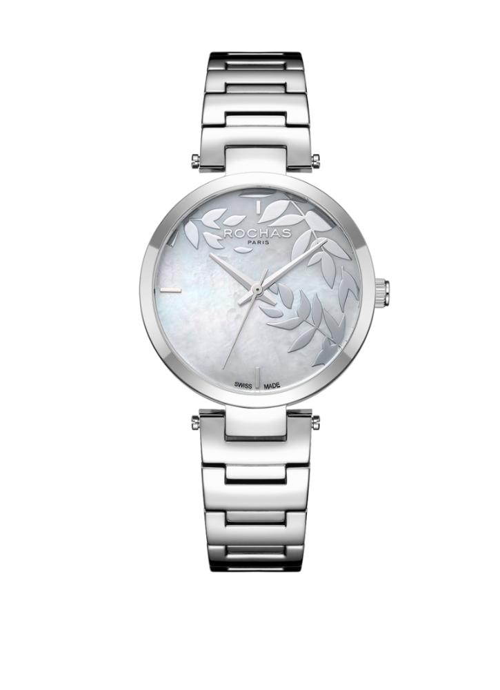 ساعة روشاس النسائية بلون فضي من الفولاذ المقاوم للصدا ومينا لؤلؤي - RWF204