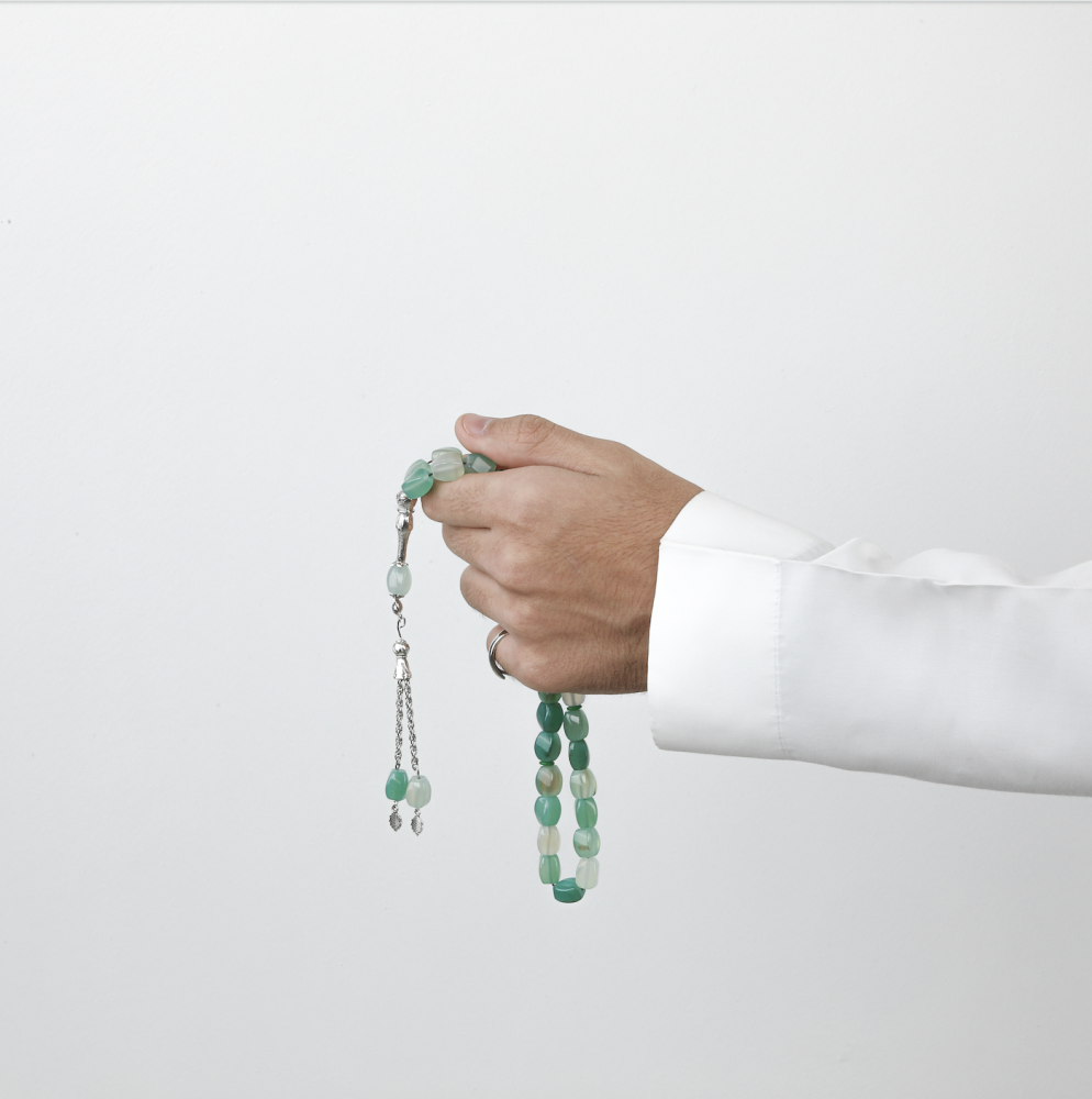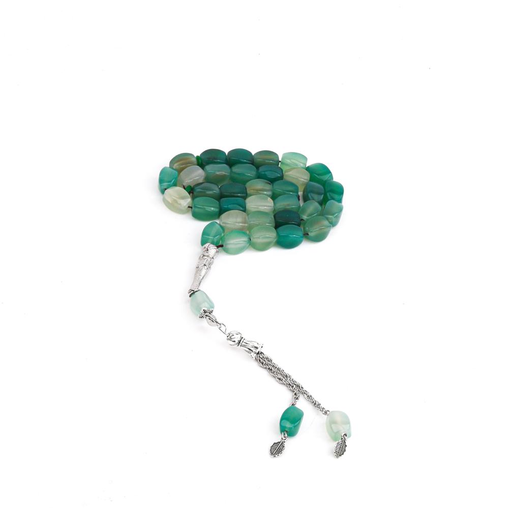 سبحة رجالية تورمالين مصنوعة من البورسلان وفضة مع خيط مقاوم للقطع بشكل مستطيل لون اخضر
