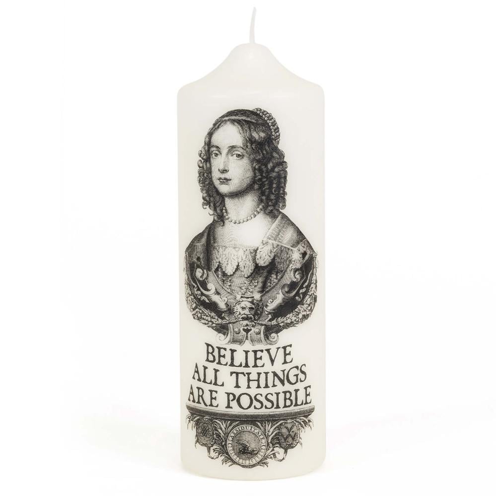 شمعة Coreterno Believe هي شمعة فنية مصنوعة يدوياً في إيطاليا، وهي جزء من مجموعة "Visionary Pillar Candles" التي تمثل انتصار الضوء على الظلام، وتجسد رسائل القوة والإيجابية. تتميز الشمعة بأنها غير معطرة ومصنوعة من الشمع المعدني والنباتي، وتستخدم تقنية طباعة عالية الدقة على الشمع فريدة من نوعها في العالم. كل شمعة موقعة يدوياً من قبل المبدع، وتأتي مع جملة ملهمة هي "اعتقد أن كل الأشياء ممكنة، كن شجاعاً وخُذ المخاطر، سيساعدك الكون".