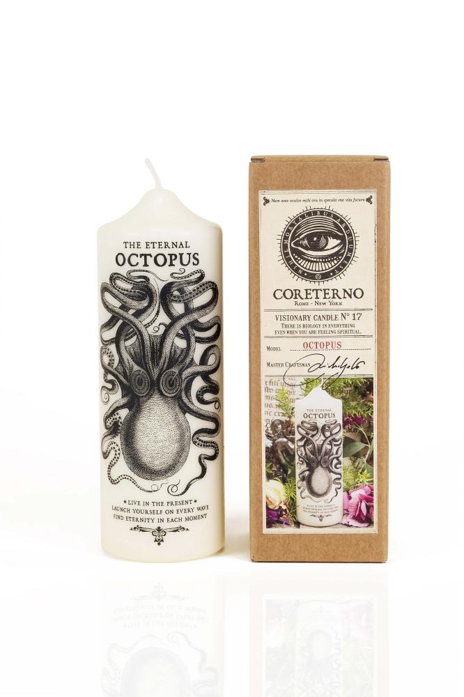شمعة Coreterno Octopus Candle (شمعة الأخطبوط من كوريتيرنو) هي شمعة عمودية (Pillar Candle) فنية وتصويرية، وتتميز بالخصائص التالية: