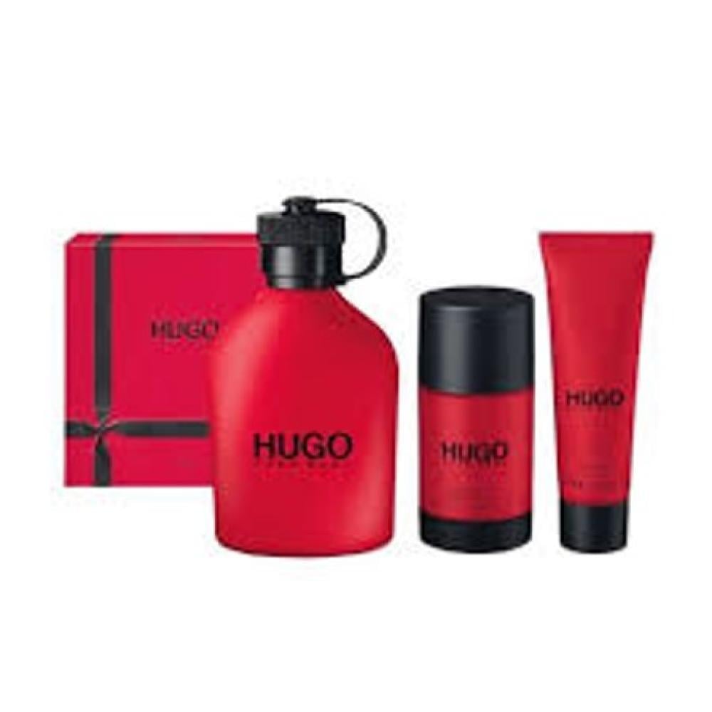 مجموعة "هوغو ريد" للرجال هي طقم هدية ثلاثي من هوغو بوس يحتوي على عطر أو دو تواليت (EDT) بحجم 150 مل، بخاخ مزيل للعرق بحجم 75 مل، وجل استحمام بحجم 50 مل. العطر يتميز بمزيج من الروائح المتباينة، حيث يجمع بين النغمات الباردة المنعشة والحارة القوية.