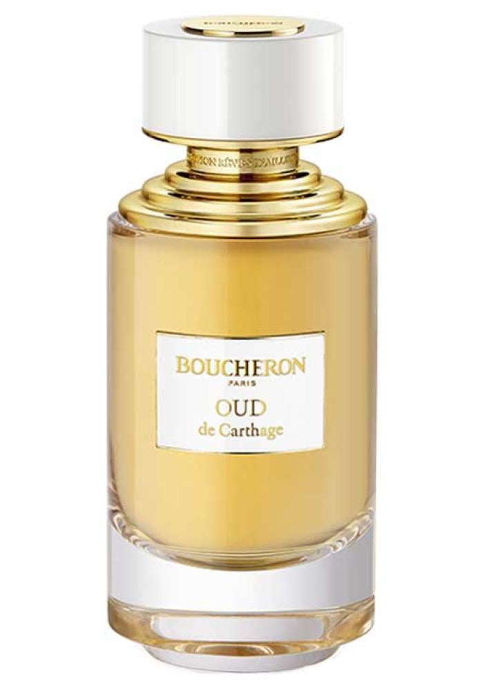 عطر "عود دي قرطاج" من بوشرون هو عطر شرقي فاخر للجنسين يتميز بمزيج غني من العود والجلود والبخور والعسل. يبدأ العطر بنفحات عليا من العسل والبخور، ثم تتطور رائحته إلى قلب يتكون من حبوب التونكا واللابدانوم، لتستقر في النهاية على قاعدة قوية من العود والجلود. يتميز العطر بثباته وفوحانه، وهو مثالي للمناسبات الخاصة وللأجواء الباردة.